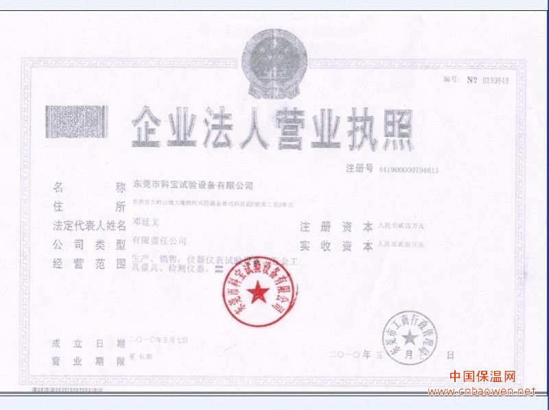 | 发证机构: | 东莞工商行政管理局 | 发证时间 : | 2010-05-07 |